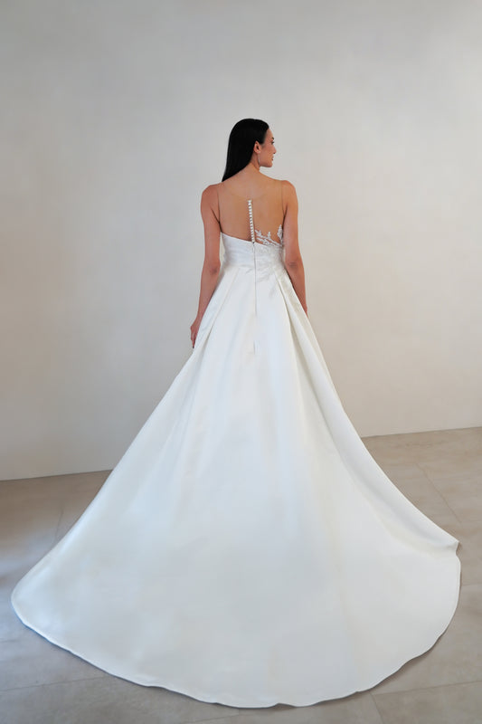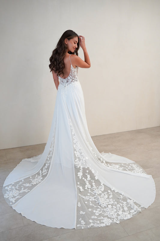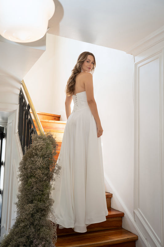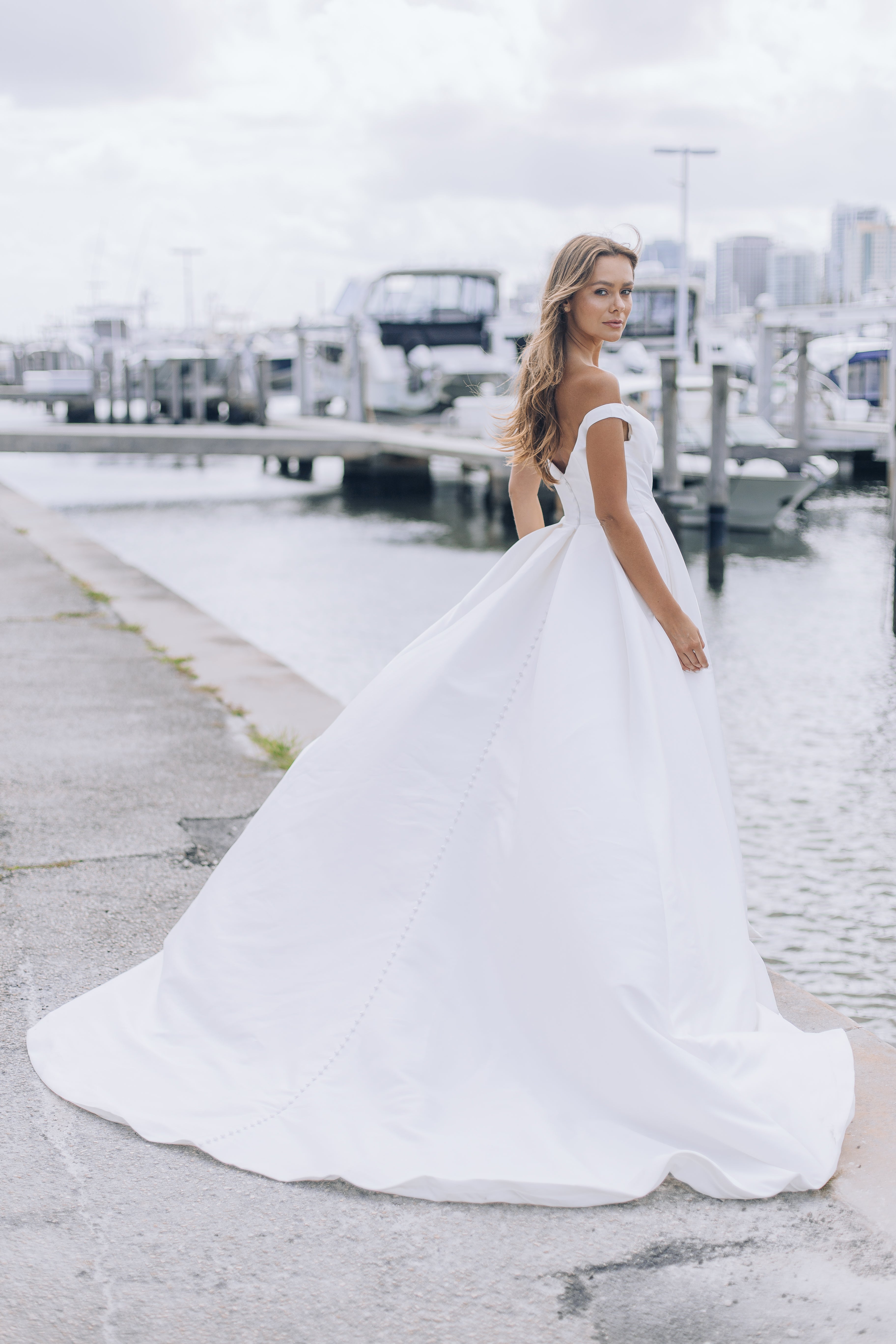 Una colección maravillosa inspirada en matrimonios de día al aire libre, con faldas que vuelan al viento y espaldas protagónicas