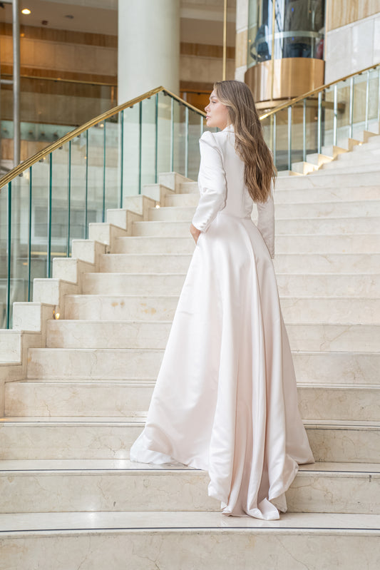- Si se ensucia durante el evento, no intentes limpiarlo tú misma. Sécalo con cuidado y llévalo a limpieza especializada después.